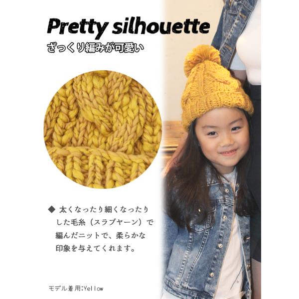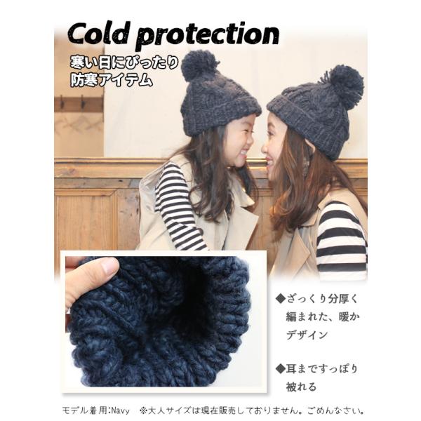 ボンボン付き手編みニットワッチ 商品番号u17125 ニット帽 帽子 キッズ