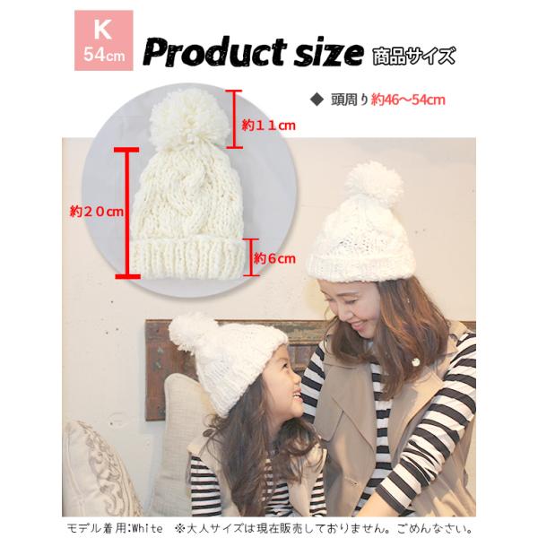 【キッズサイズ:頭周り約46-54cm(※伸縮前-伸縮後(最大)計測サイズ)高さ(平置き)約20cmボンボン直径約11cm重さ:約g】