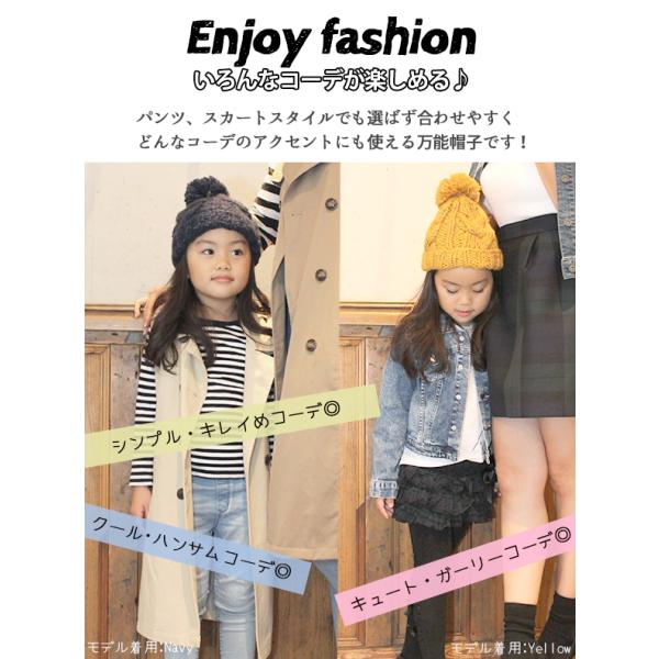 手編み ボンボン付きケーブルニット帽 キッズサイズ
