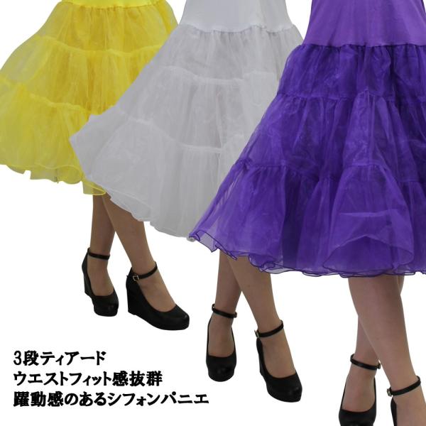 シフォン素材のボリュームたっぷりパニエ! 2枚重ねのシフォンティアードに裏生地付きで透けません。