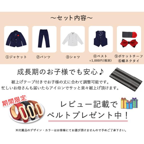 蝶ネクタイ・ベルト・裾上げテープ等の付属品のカラーはお選び頂けません。