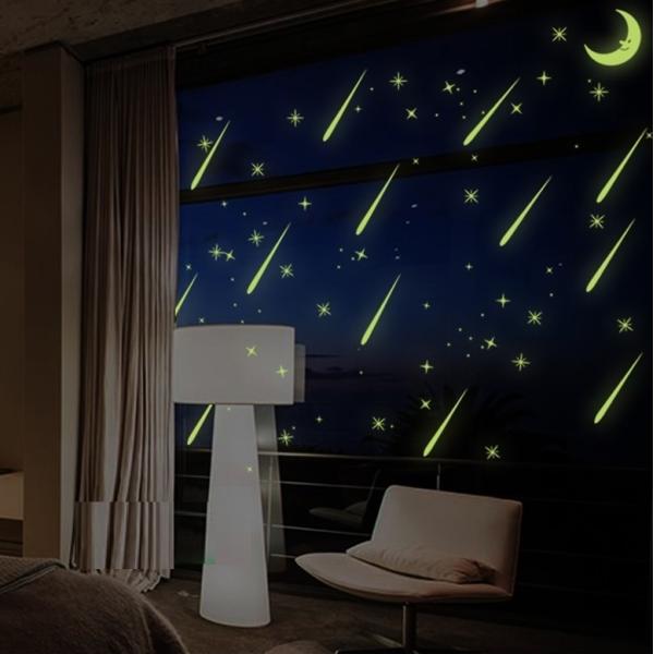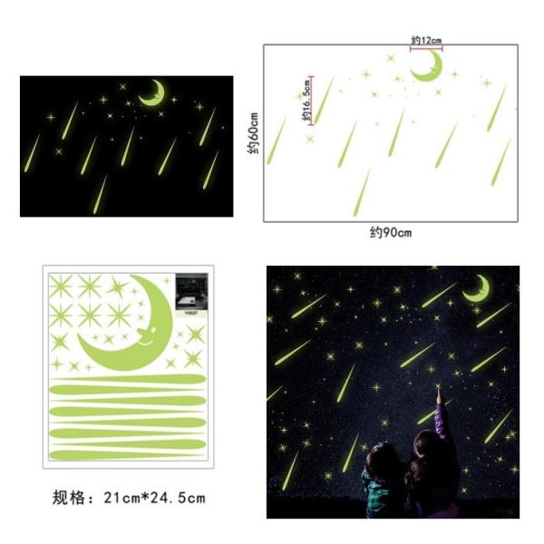 暗闇で光る☆ 流れ星と月 蓄光ステッカー インテリア ステッカー 月光 満月 星 土星 夜光 蛍光 シール