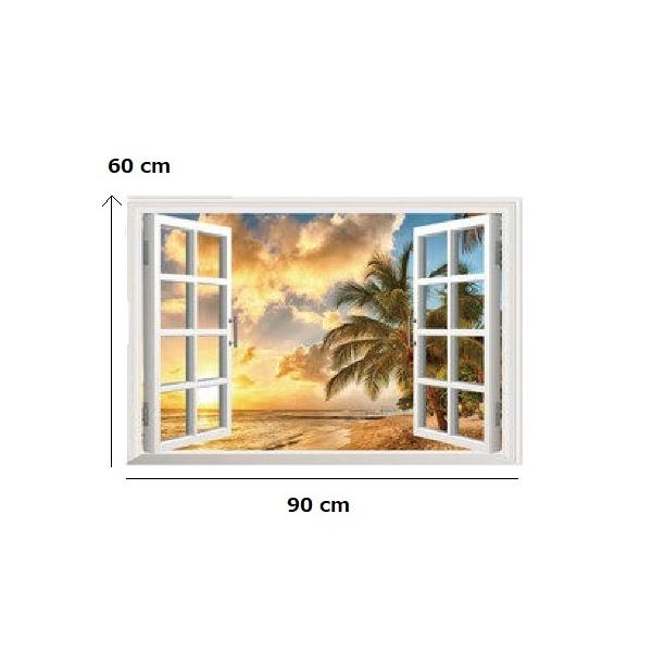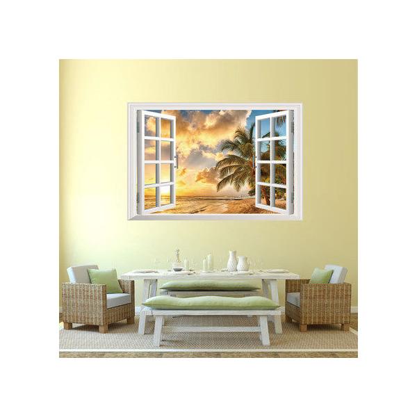 癒しの3D ウォールステッカー 南国 サンセットビーチ 夕日 窓 騙し絵 トリックアート 剥がせる 壁紙 シール 防水 DIY 壁 インテリア