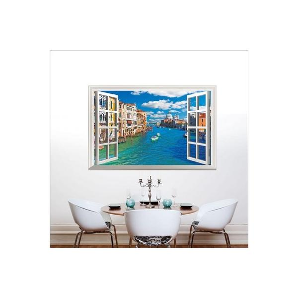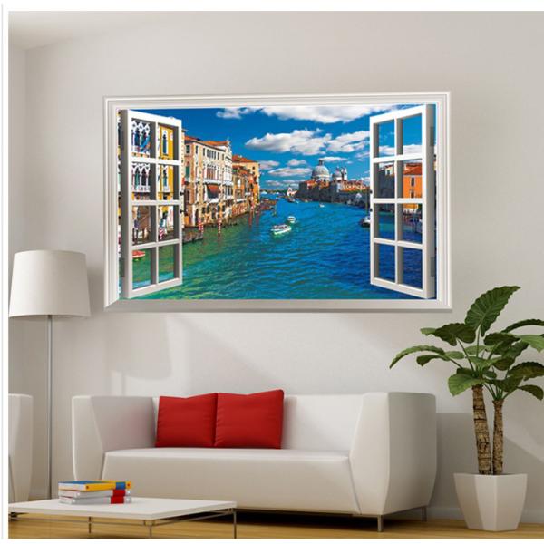 癒しの3D窓 ウォールステッカー 水の都 街並み 騙し絵 トリックアート はがせる 壁紙 シール 防水 DIY 壁 インテリア