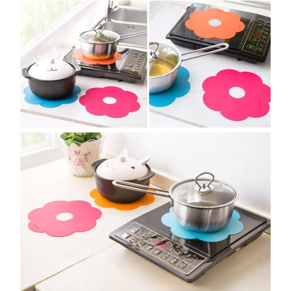 オレンジ フラワーモチーフ IHヒーター用 焼け焦げ防止 シリコン保護カバー 【D-122】IHマット 汚れ防止シート 耐熱