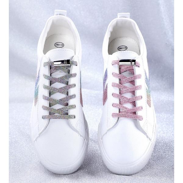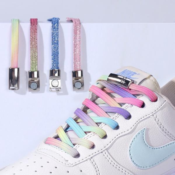 シューレース シャイニー 靴ひも ワンタッチ マグネット 【ブルー】 おしゃれ スニーカー ラメ 紐 ゴム紐 伸びる 結ばない くつひも 伸縮