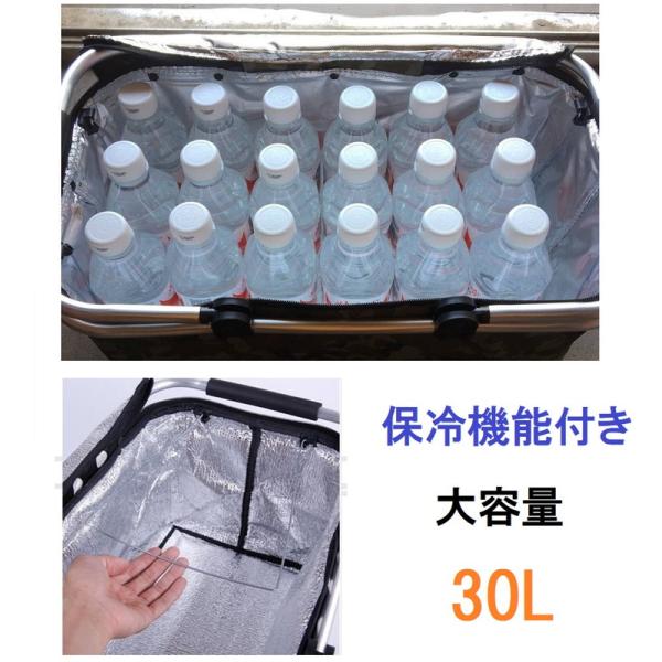 保冷・保温 機能付き 30L 折りたたみ式 エコバッグ【オレンジ】大容量 バスケット 買い物かご 断熱バッグ屋外 ピクニック