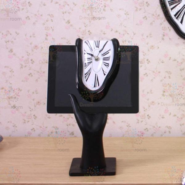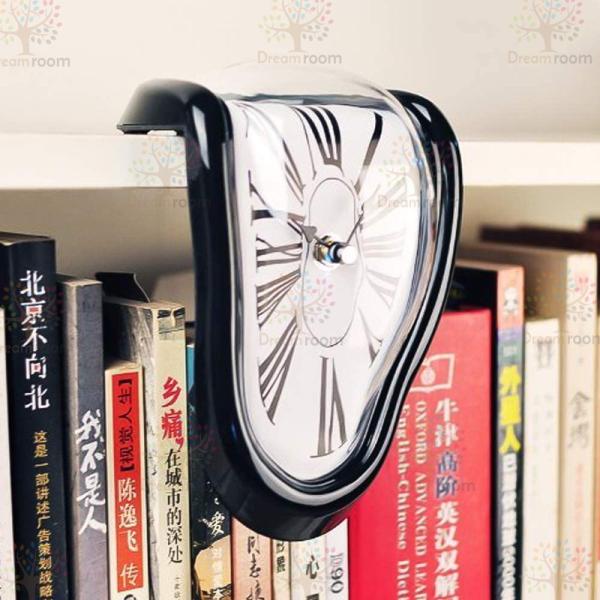 アートウォールクロックアメリカン雑貨 デザイン面白おもしろアンティーク ダリの柔らかい時計 インテリア置き時 90度曲がったアートクロック(ブラック)