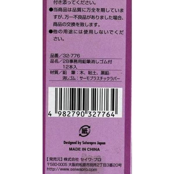 ●品名・2B 事務用鉛筆 消しゴム付 12本入