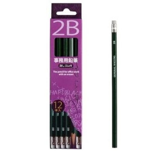 2B 事務用 鉛筆 消しゴム付 1ダース (12本入) 書き方鉛筆 ペン字