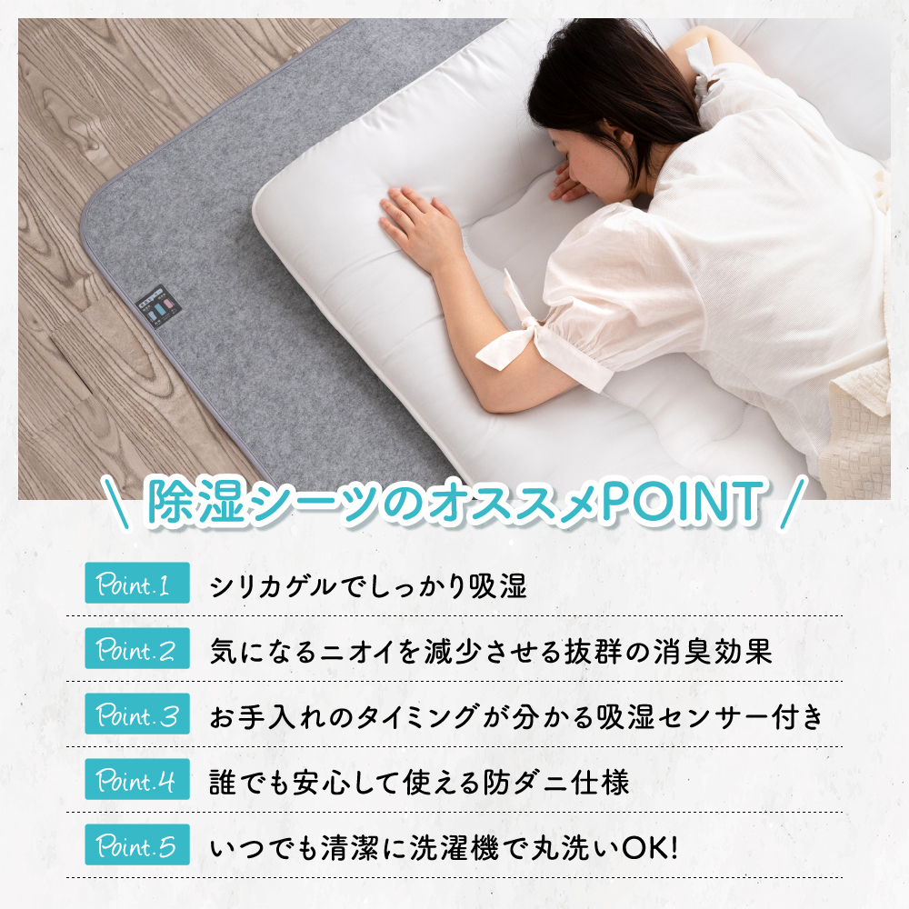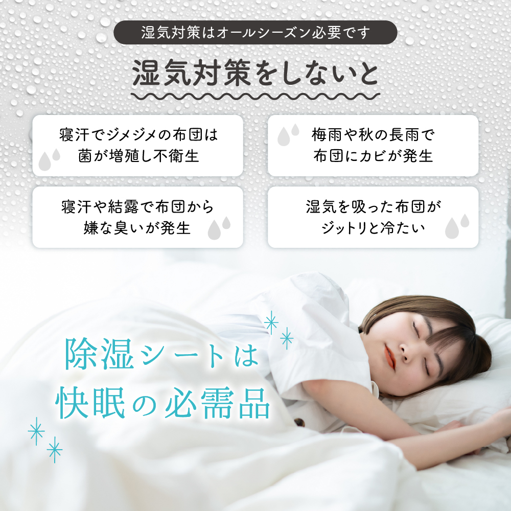 【繰り返し使える!】敷布団やベッドパッド、敷きパッドの下に敷くだけで、湿気をどんどん吸収します。