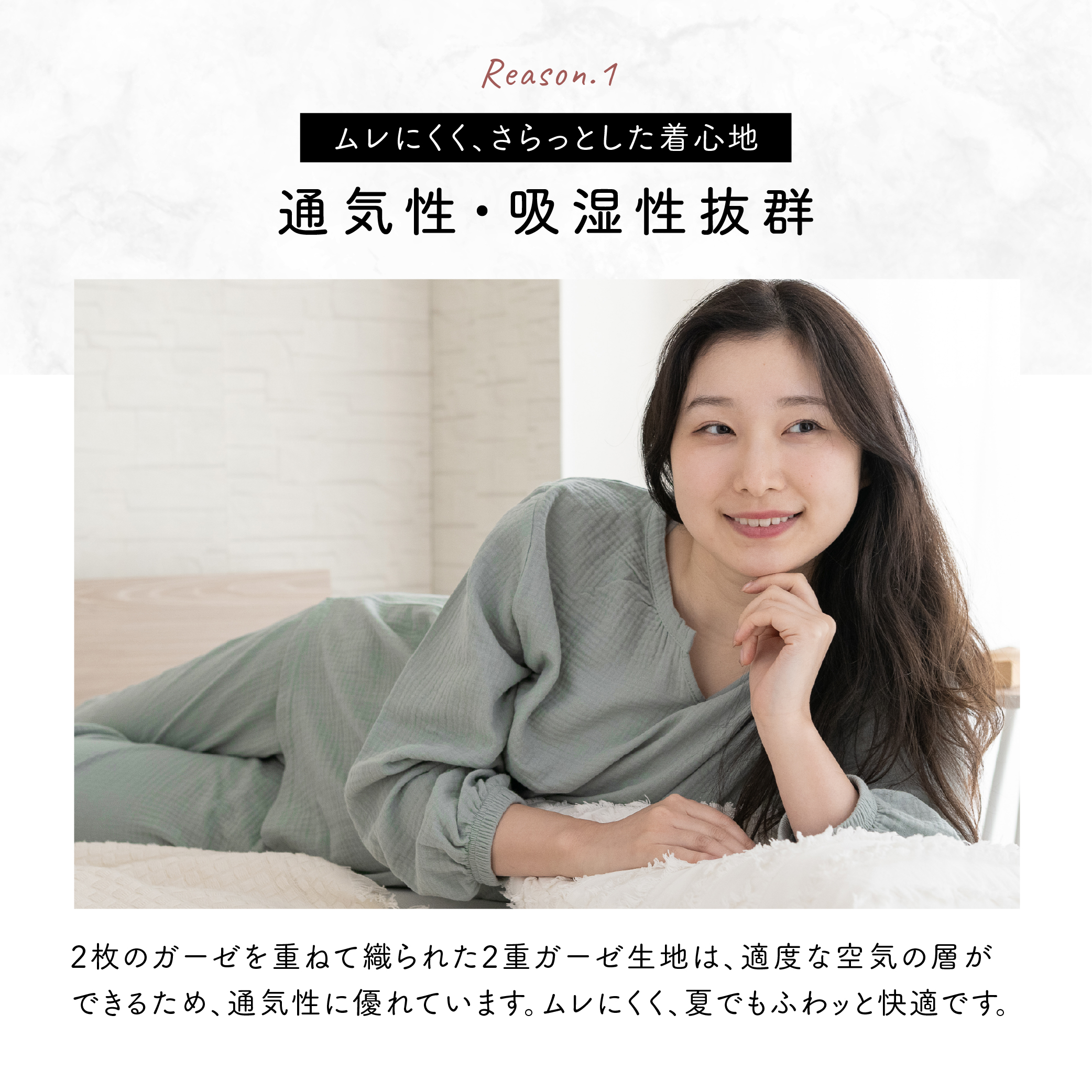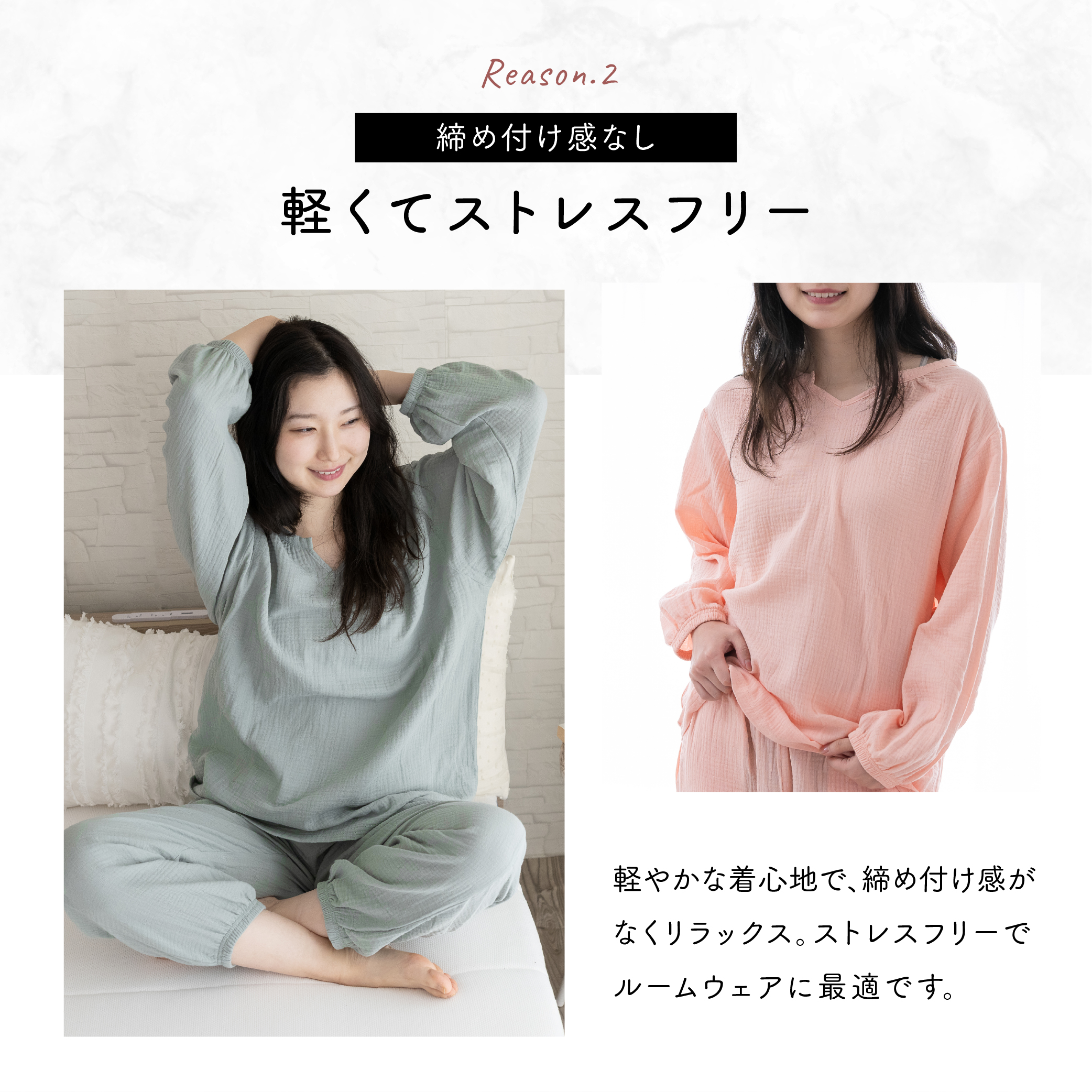在庫処分30%OFF ルームウェア 部屋着 レディース セットアップ ガーゼ 綿100% 長袖 ふんわり 上下セット パジャマ セット 可愛い ゆったり リラックスウェア