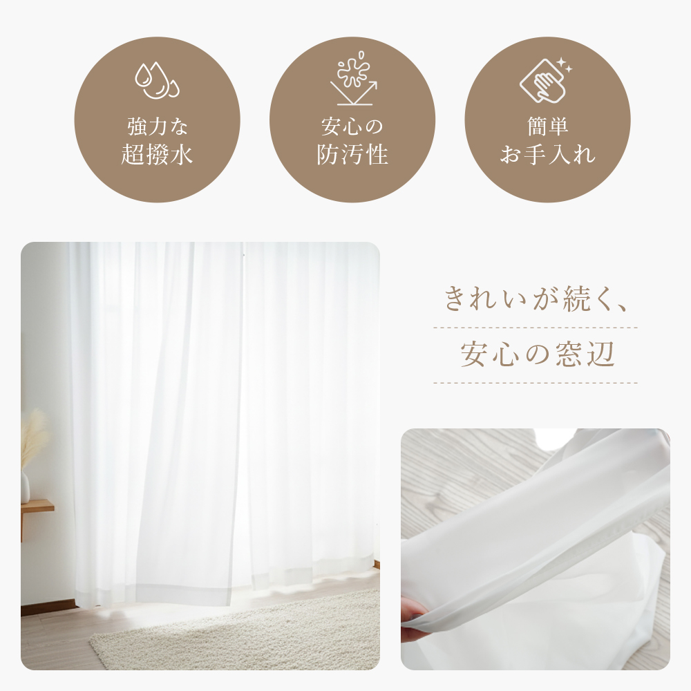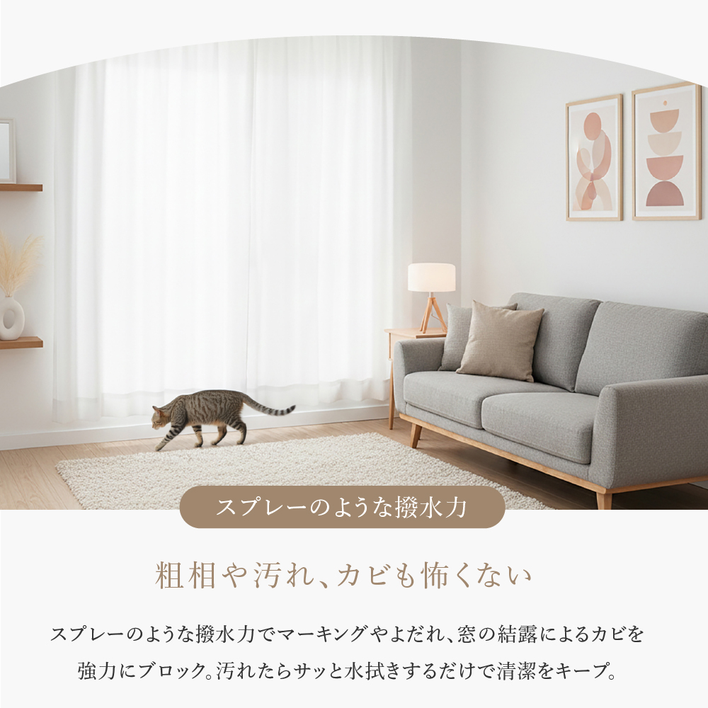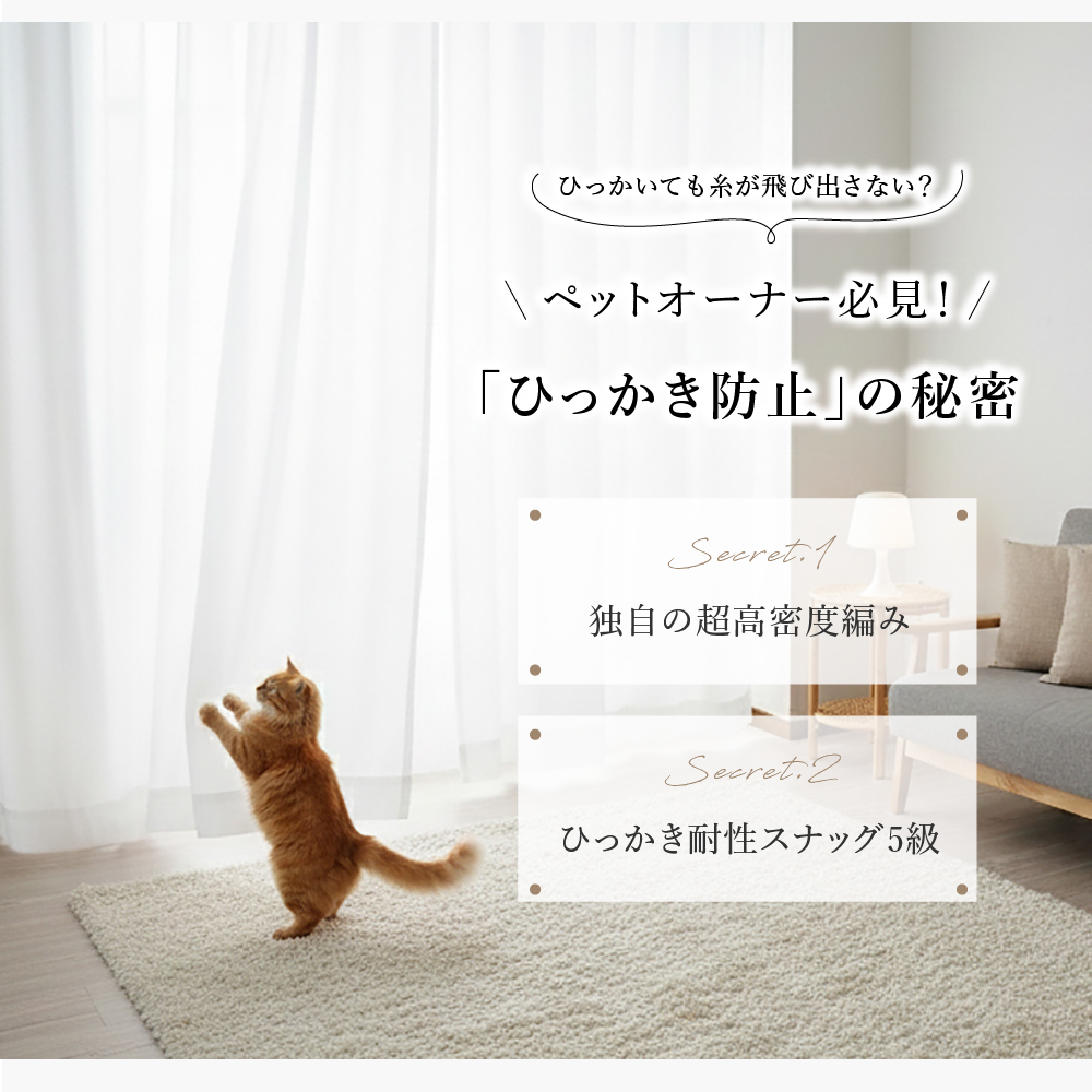猫の爪に強く汚れも弾く!夜も見えにくい撥水レースカーテン