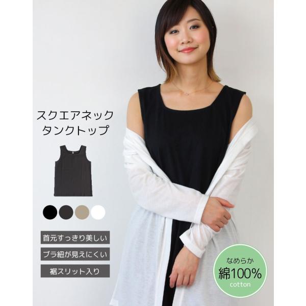 なめらか綿100% スクエアネックタンクトップ ノースリーブ カーディガンインナーに最適 大人コーデにおすすめ きちんと見え タンクトップ レディース送料無料