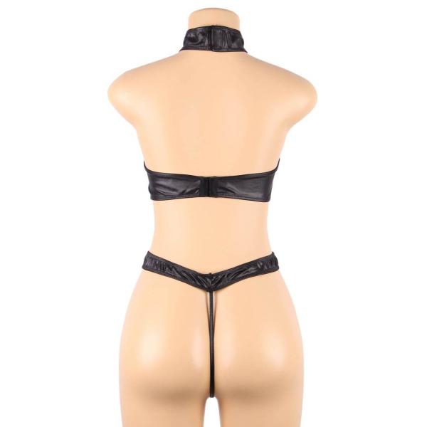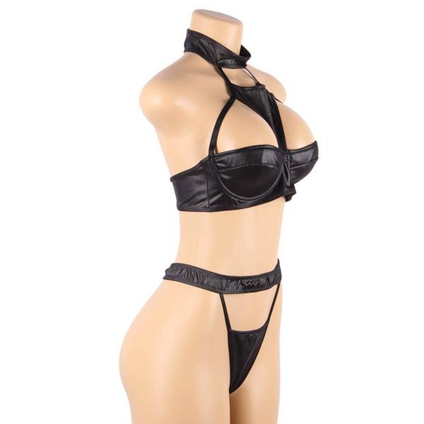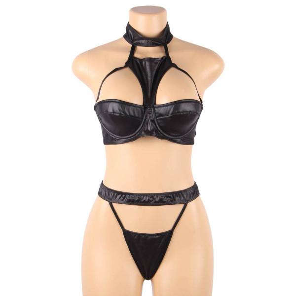 下着 レディース 上下セット フェイクレザー ブラ ショーツ セット 大きいサイズM-5XL セクシーランジェリー 黒