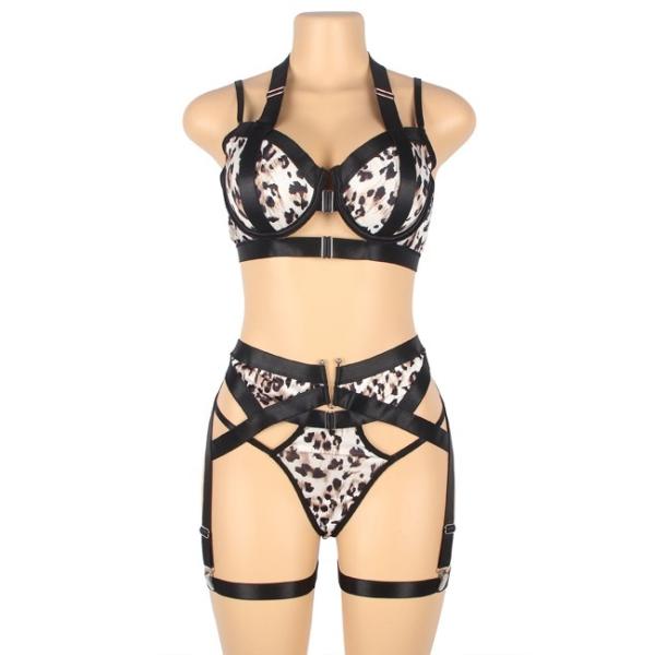 下着 レディース 上下セット ブラ ショーツ ガーターベルト ガーター セット セクシーランジェリー 豹柄 レオパード ヒョウ柄