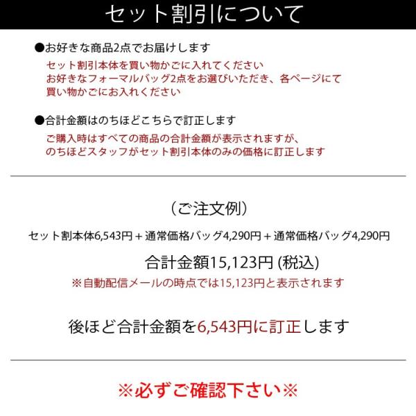 通常1点4290円のフォーマルバッグが2点で6543円のセット割引