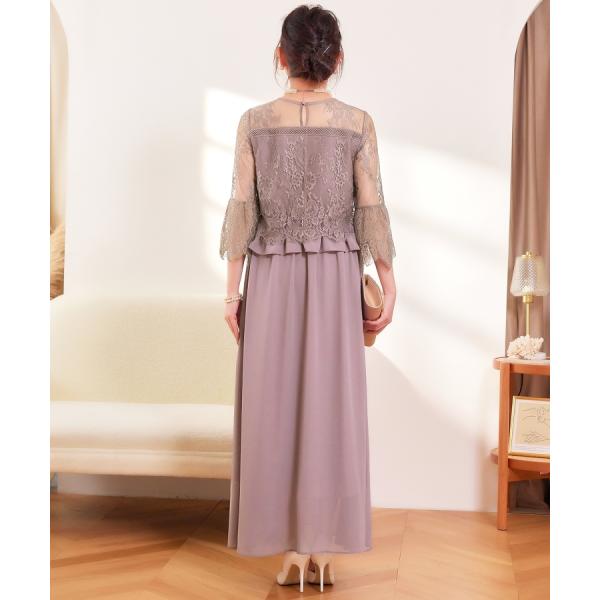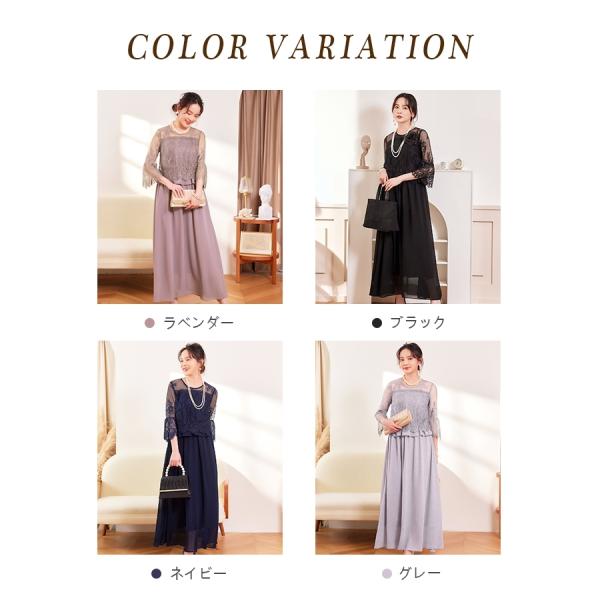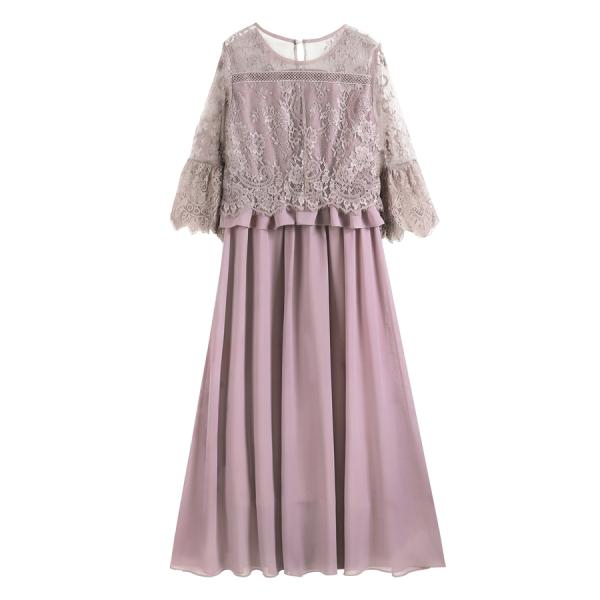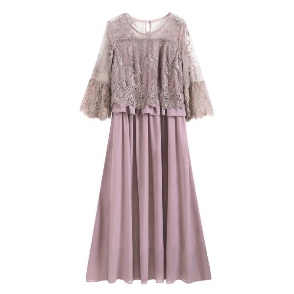 透け感レースとシフォンのレイヤードを楽しむAラインロングドレ