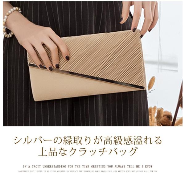 パーティーバッグ シルバー クラッチ 普段使い 結婚式 プリーツ サテン パーティー 2way ハンドバッグ 3色選べる ショルダー 小物 二次会
