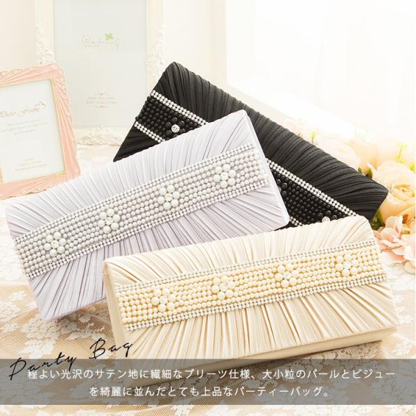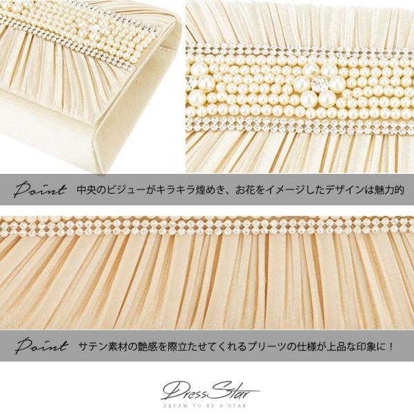 パーティーバッグ クラッチ ビーズ 結婚式 プリーツ サテン ロングチェーン パーティー ディナー ビジュー 2way ショルダー