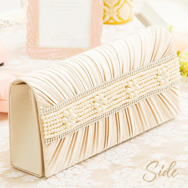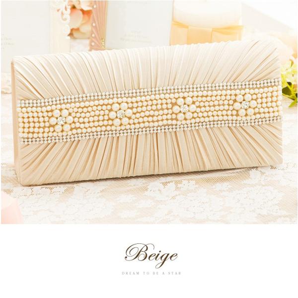 パーティーバッグ 大きめ クラッチ ビーズ 結婚式 プリーツ パーティー エレガント ビジュー サテン フォーマル ディナー 収納力抜群