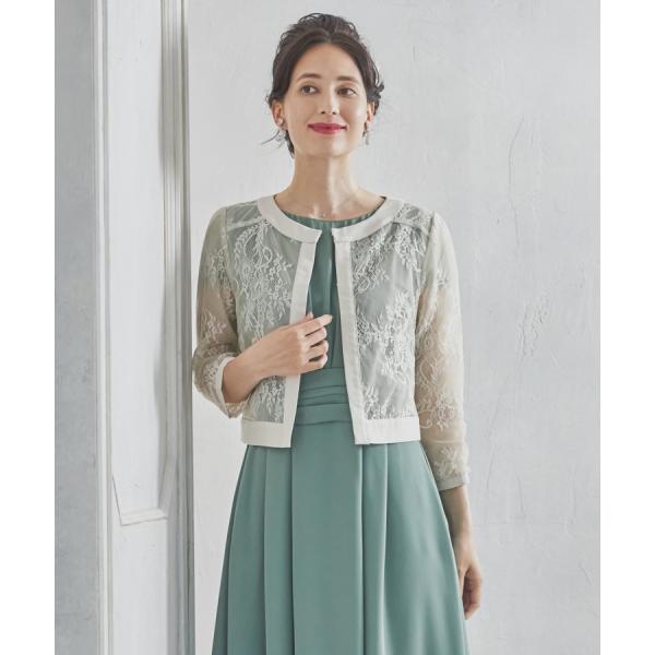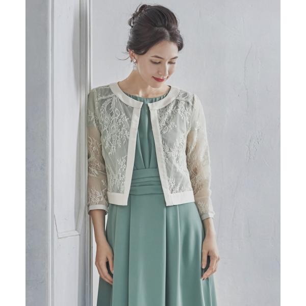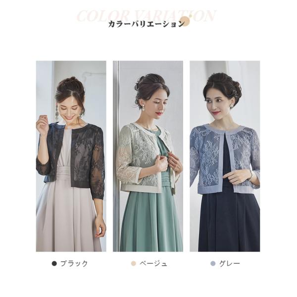 ボレロ パーティーボレロ ショートジャケット フォーマルジャケット ノーカラージャケット レース オーガンジー 七分袖 羽織り 体形カバー 二の腕カバ
