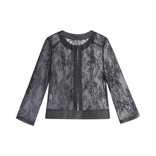 上品な抜け感を残しながら二の腕カバーも叶うショート丈ボレロ