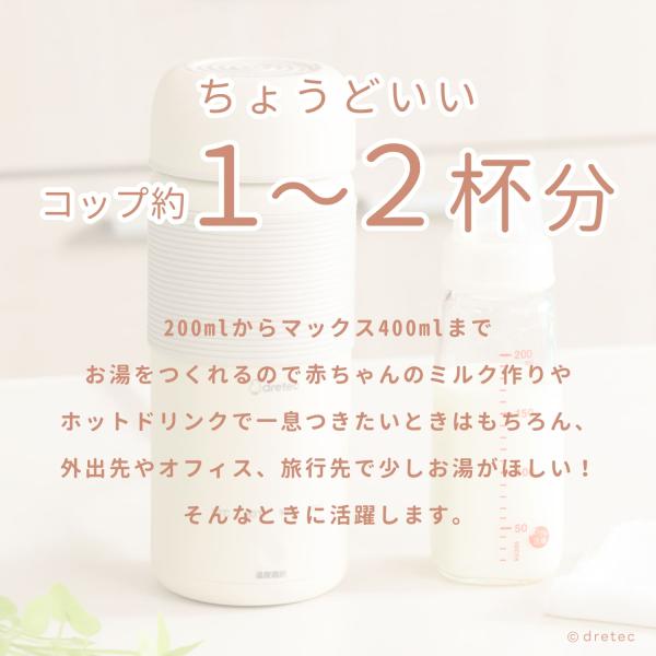 [検索キーワード] ドリテック 公式 調温機能 携帯ケトル 持ち運び ケトル タンブラー 旅行 湯沸かし器 ポータブルケトル 小型ケトル 200ml 400ml 温度調節 4段階 温度設定 70℃ 80℃ 90℃ 95℃ オフィス ホテル 車中泊 お湯 赤ちゃん ミルク作り 出張 一人暮らし 音お知らせ コード着脱式 コンパクト ポーチ付 携帯タンブラー 保温なし ケトルタンブラー 熱湯 コーヒー 日本茶 お茶 紅茶 白湯 防災 備蓄 備品 プレゼント ギフト お祝い 誕生日 出産祝い 母の日 父の日 敬老の日 クリスマス アイボリー ベージュ PO-170 dretec