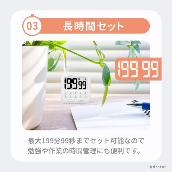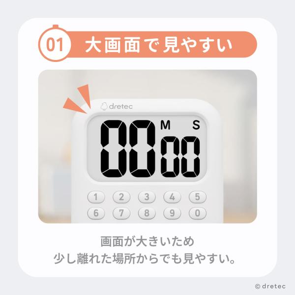 ドリテック 公式 キッチンタイマー デジタル タイマー 大画面 キッチン 見やすい テンキー シンプル 一人暮らし 新生活 ホワイト dretec T-651