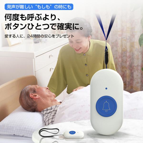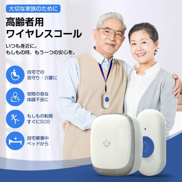 ワイヤレスコール ベル2個とボタン1個セット 介護用 高齢者 家庭用 防水 工事不要 風呂 トイレ 緊急コール ナースコール 大音量 光 呼び鈴 ワイヤレスチャイム