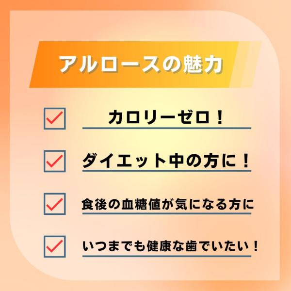 ・アルロースの甘さ:砂糖に対してアルロースは70%ですっきりした甘味。