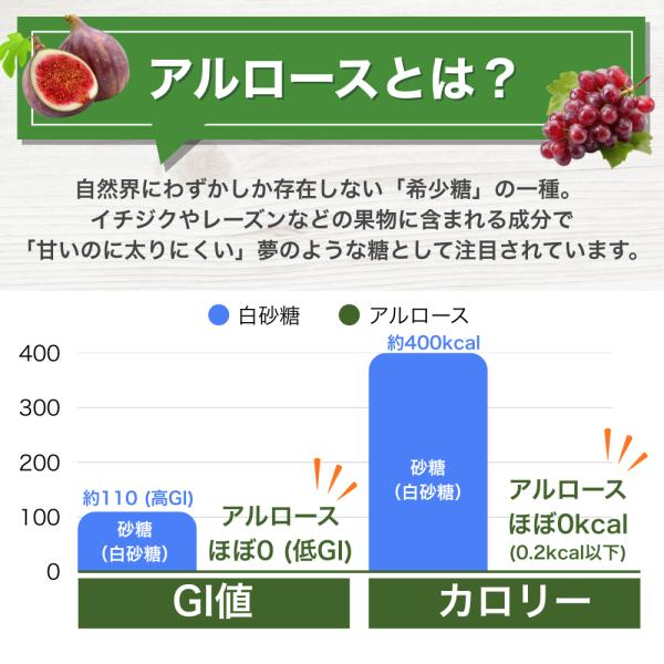 ・アルロースの甘さ:砂糖に対してアルロースは70%ですっきりした甘味。
