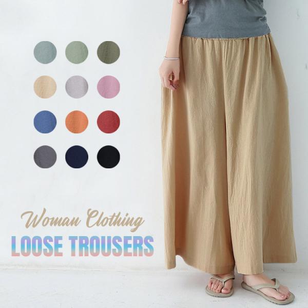 ワイドパンツ レディース 秋 黒 きれいめ 9分丈 ガウチョパンツ 動きやすい ロング コットン ボトムス 体型カバー 無地 ナチュラル おしゃれ