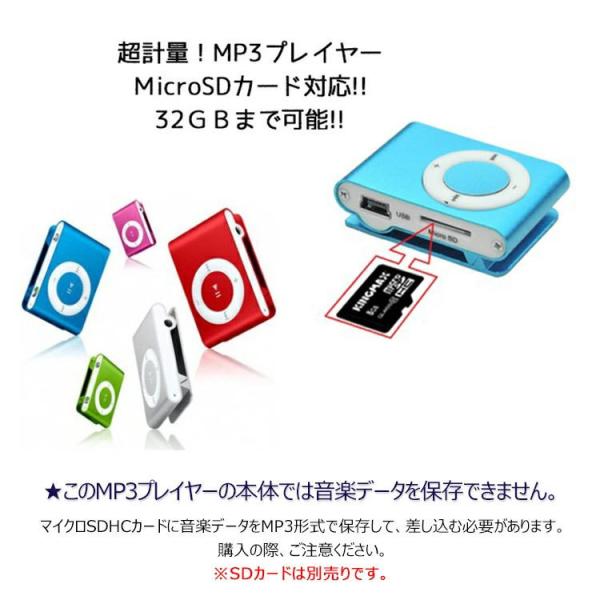 MP3プレイヤー microSDカード対応 クリップ MP3プレイヤー本体のみ 音楽プレイヤー ミュージック 超軽量 MP3 プレーヤー 音楽再生 SD
