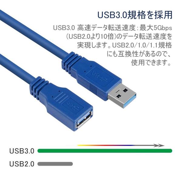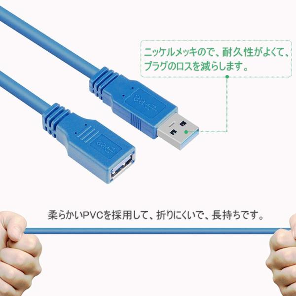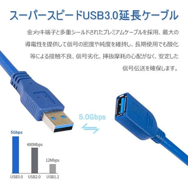 USB3.0 延長ケーブル 1M 超高速 延長コード USB A オス-メス 超高速 5Gbpsのデータ転送同期リード USBケーブル