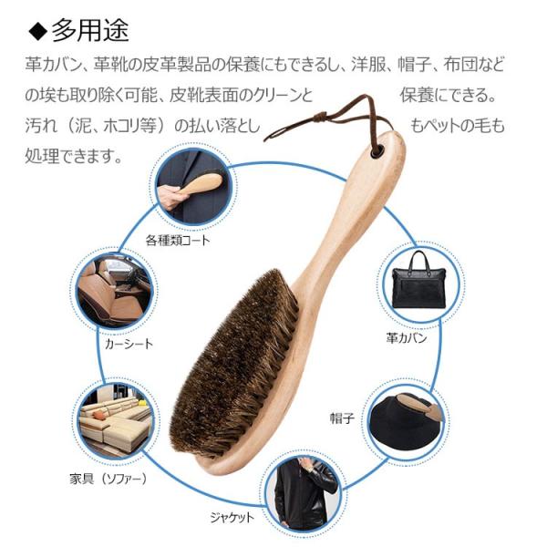 馬毛ブラシ 靴 洋服 ブラシ 洋服ブラシ スーツブラシ ホコリ落とし ホースブラシ 持ちやすい 柔らかい 洋服お手入れ 静電除去 多機能 木製長柄 清掃用 おすすめ
