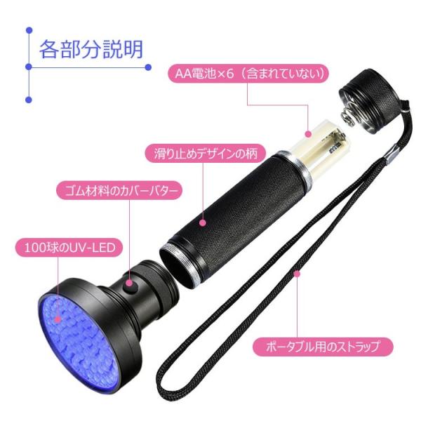 ブラックライト LED UV ライト 紫外線 100LED 懐中電灯 殺菌 ライト 目には見えない汚れに対策 ペット 犬 猫 尿 跡 菌 カビ 掃除 照射 偽造防止
