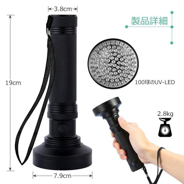 サイズ:全長(約)3.8X19cm、100球のUV-LED (約)7.9cm