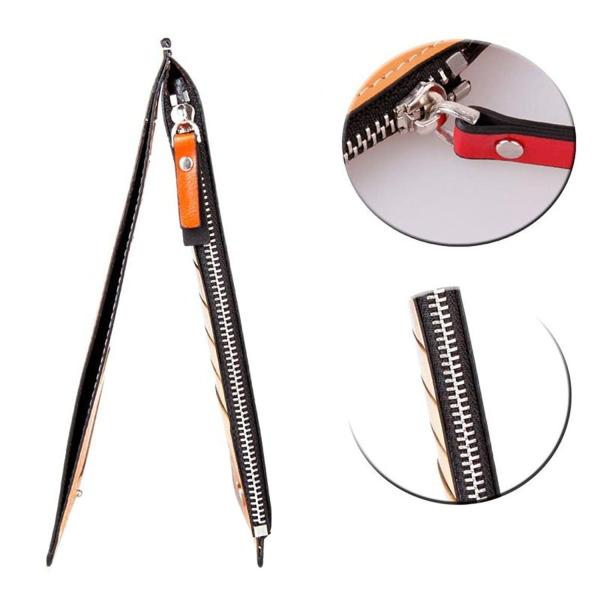 スナップボタンとファスナーを通して開閉します。開いたときにカードを見つけやすく探さずに出し入れできて便利です。