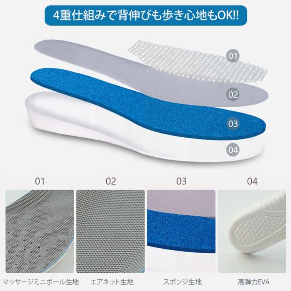 在庫処分 背伸び シークレット インソール 防臭 靴中敷き 足腰膝負担軽減 歩き衝撃吸収 足ストレス 足癒し 足疲れ スニーカー ヒール かかと保護 メンズ