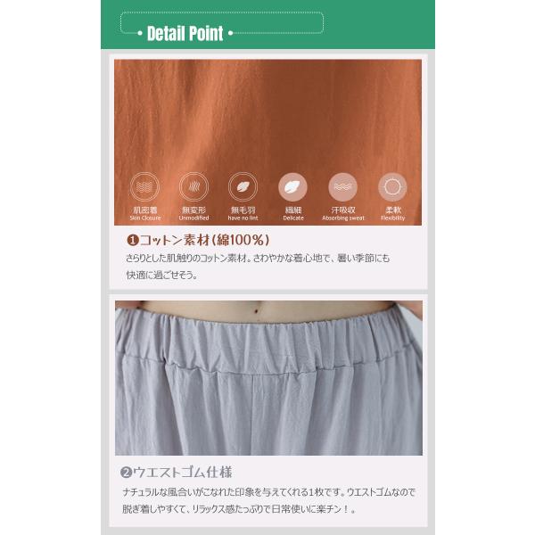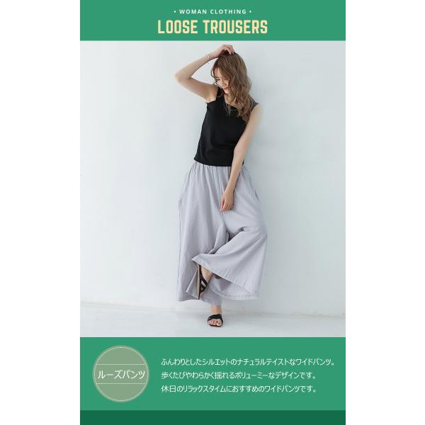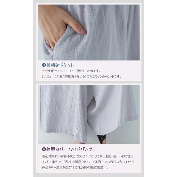 ワイドパンツ レディース ウエストゴム 綿 20代 30代 40代 50代