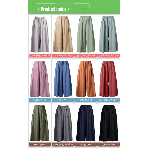 ワイドパンツ レディース 9分丈 ガウチョパンツ ロング コットン 綿 ボトムス 体型カバー 無地 通勤 仕事 ナチュラル カジュアル 大きいサイズ 大きめ 春 夏 秋 きれいめ おしゃれ 動きやすい 20代 30代 40代 50代 黒 ブラック 女性 服 コーデ 薄手 おしゃれ かわいい 可愛い 人気 おすすめ 爆買