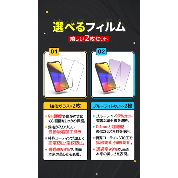 iphone ガラスフィルム 2枚セット ブルーライト ガイド付き