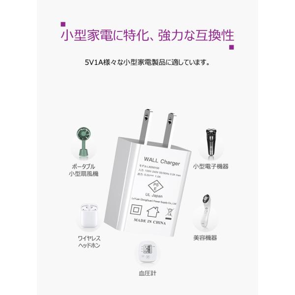 充電器 iphone usbアダプター コンセント 5V1A usb充電器 ACアダプター スマホ充電器 android 高速 コンパクト 日本PSE認証済み