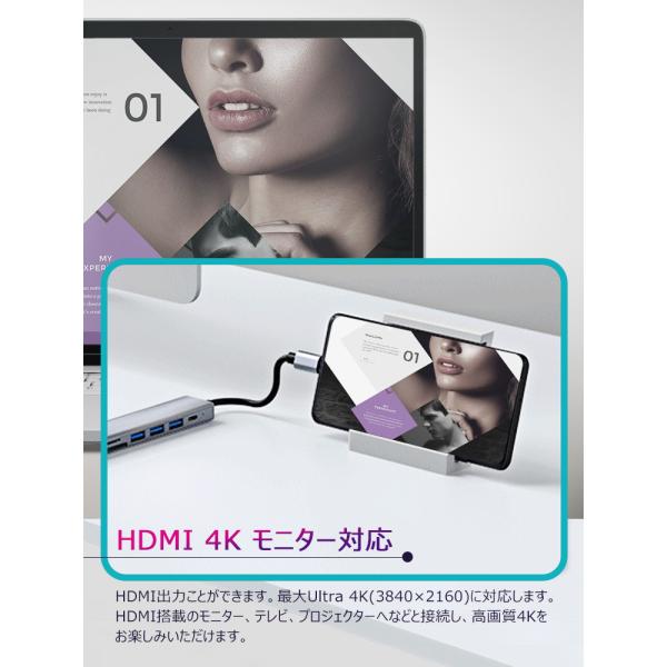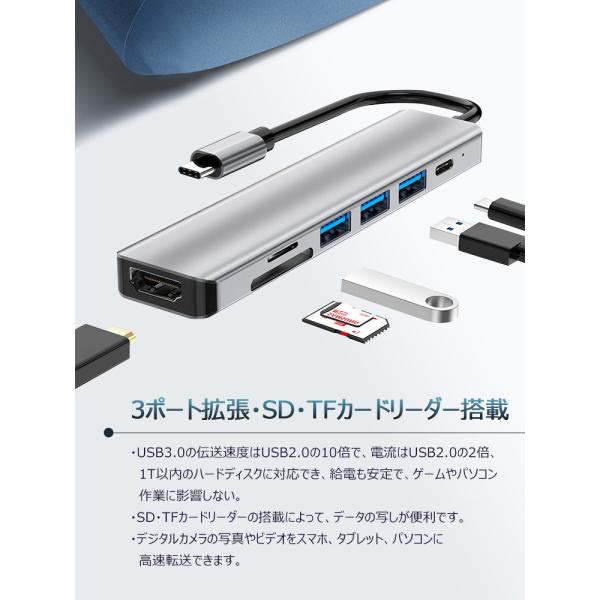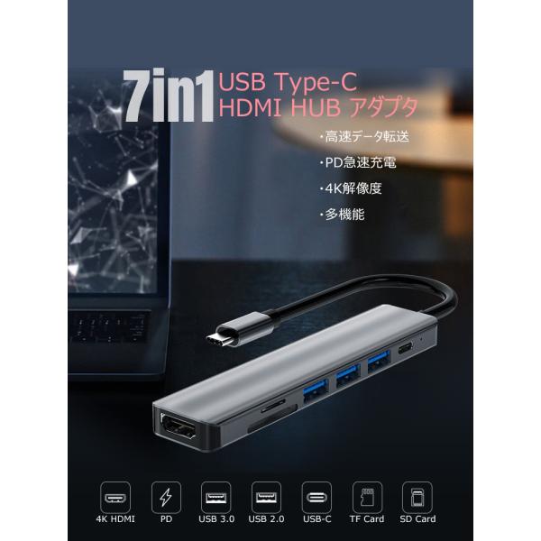 type-c typec ハブ 7in1 HDMI 4K USB3.0 PD87w対応 SD microSDカードリーダー USB変換アダプター MacBook ノートパソコン ノートPC surface iPad