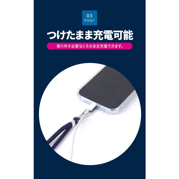 ケースに挟むだけ!首や肩にかけるだけでスマホをサッと取り出せます。どんなスマホケースでも、充電口さえあればストラップがつけられます。