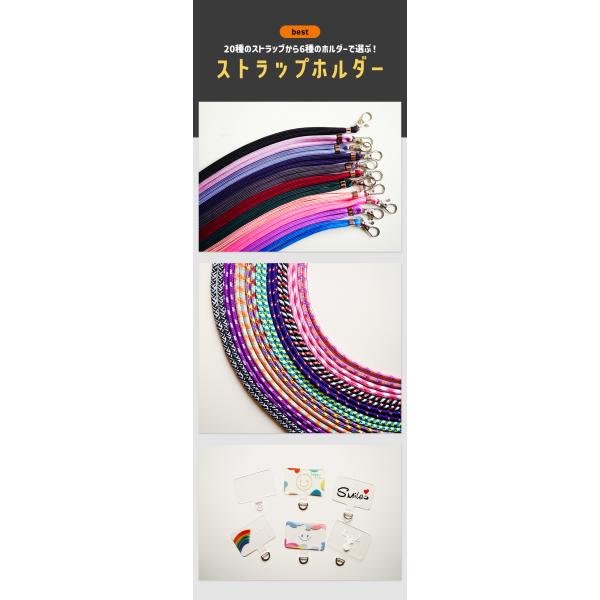 20種のストラップから6種のホルダーで選ぶ! どの色もおしゃれです!