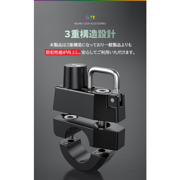 ヘルメットロック 自転車 ヘルメット ロック 自転車 鍵 ヘルメットホルダー カギ 自転車 バイク 盗難防止 汎用 防犯 原付 鍵2本付き