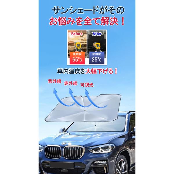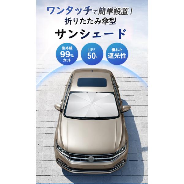 商品名 : サンシェード 車 フロント 傘型 遮光 遮熱 2023 車サンシェード 車 カー用品 UV紫外線カット 日除け 日よけ 折りたたみ傘 紫外線対策 断熱 収納便利 暑さ対策 車保護 カーサンシェード 軽自動車 中大型SUV カー用品 ケース付