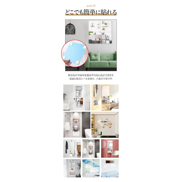 【超軽量!割れない鏡】 鏡 全身鏡 姿見鏡 割れない 貼る セット アクリル ミラー 飛散防止 穴あけ不要 賃貸OK 両面シールつき 軽量 レイアウト自由 歪み軽減